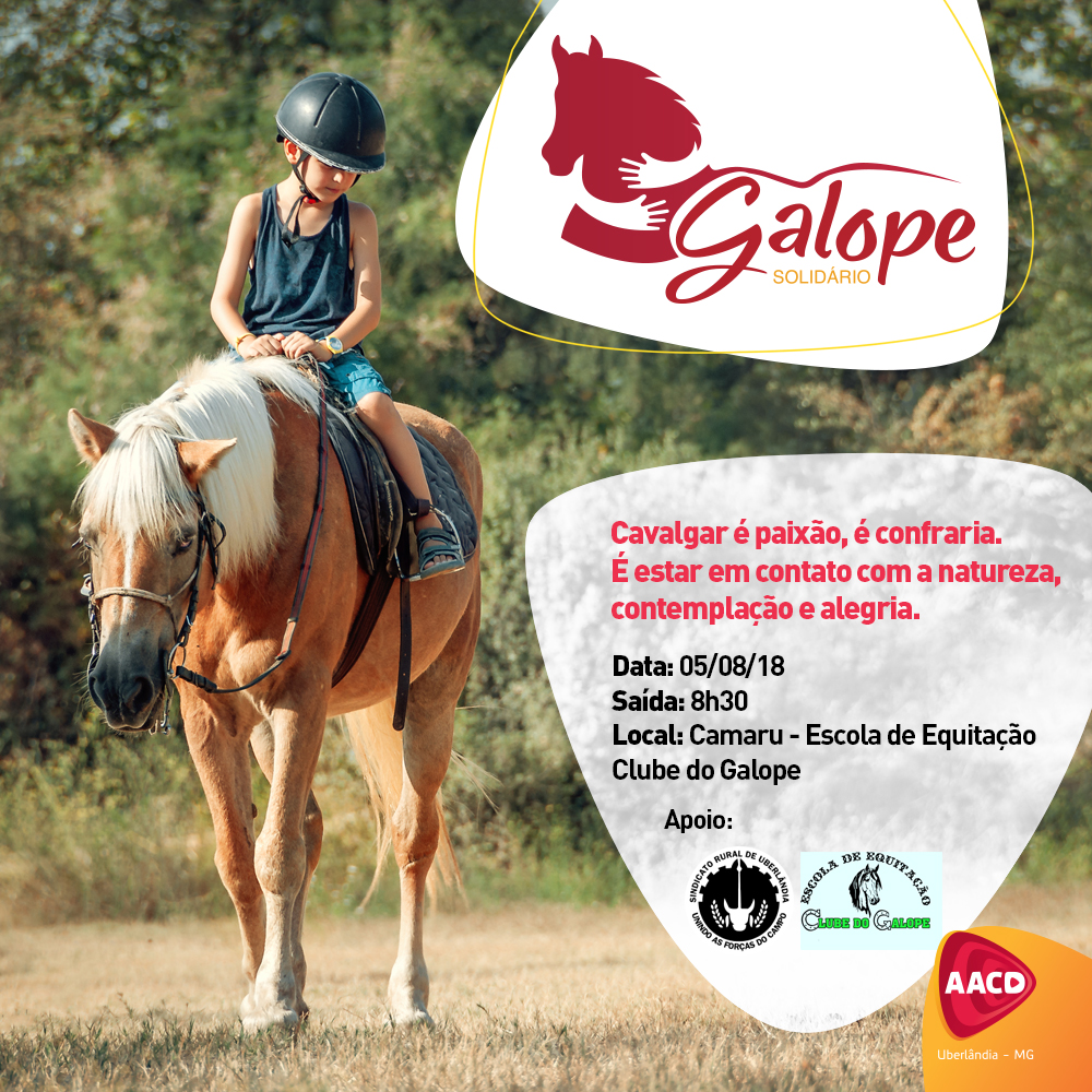 Pacientes da AACD Uberlândia terão uma manhã repleta de emoção no Camaru Neste domingo, pacientes da AACD Uberlândia participarão de uma atividade inédita para muitos. O “Galope Solidário”, um evento inspirado no “Garupa do Bem” realizado no primeiro semestre com pilotos de motos. O Galope acontecerá no...